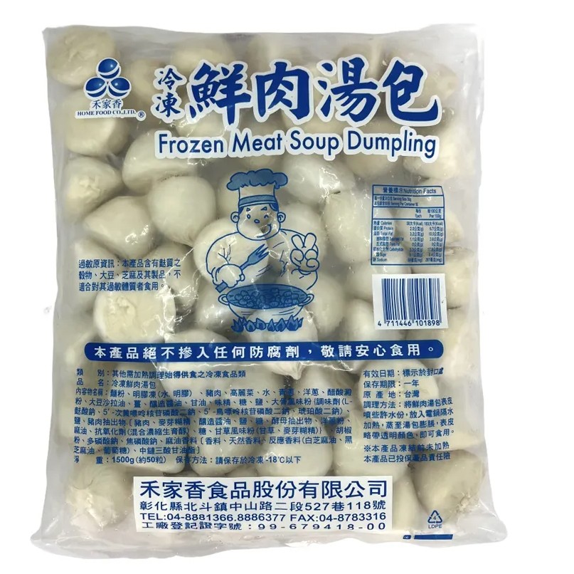 內容物:麵粉、豬肉、水、高麗菜、青蔥、洋蔥、大豆蛋白(非基因改造)、薑、醬油、糖、大豆沙拉油、鹽、豬肉抽出物、胡椒粉、洋蔥粉、麻油香料、明膠